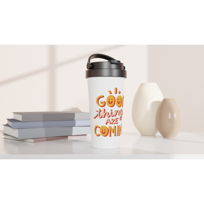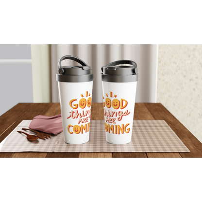 Good Things Are Coming - White 15oz Stainless Steel Travel Mug