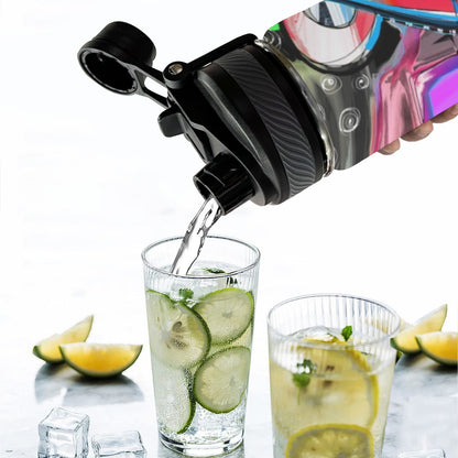 With dual-use lid and top handle, this water bottle can accompany you anywhere.