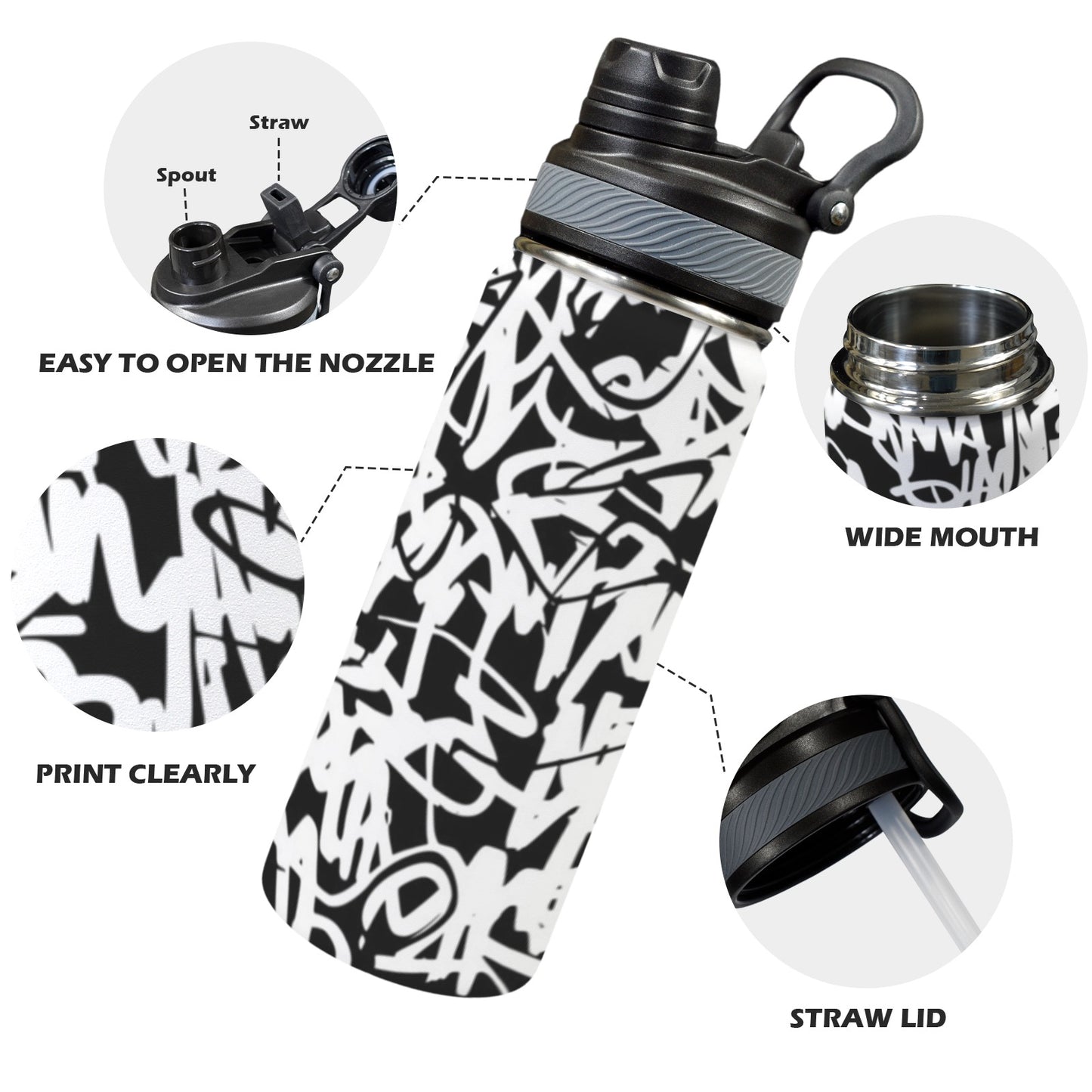 Graffiti - Insulated Water Bottle with Dual-Use Lid (18oz)