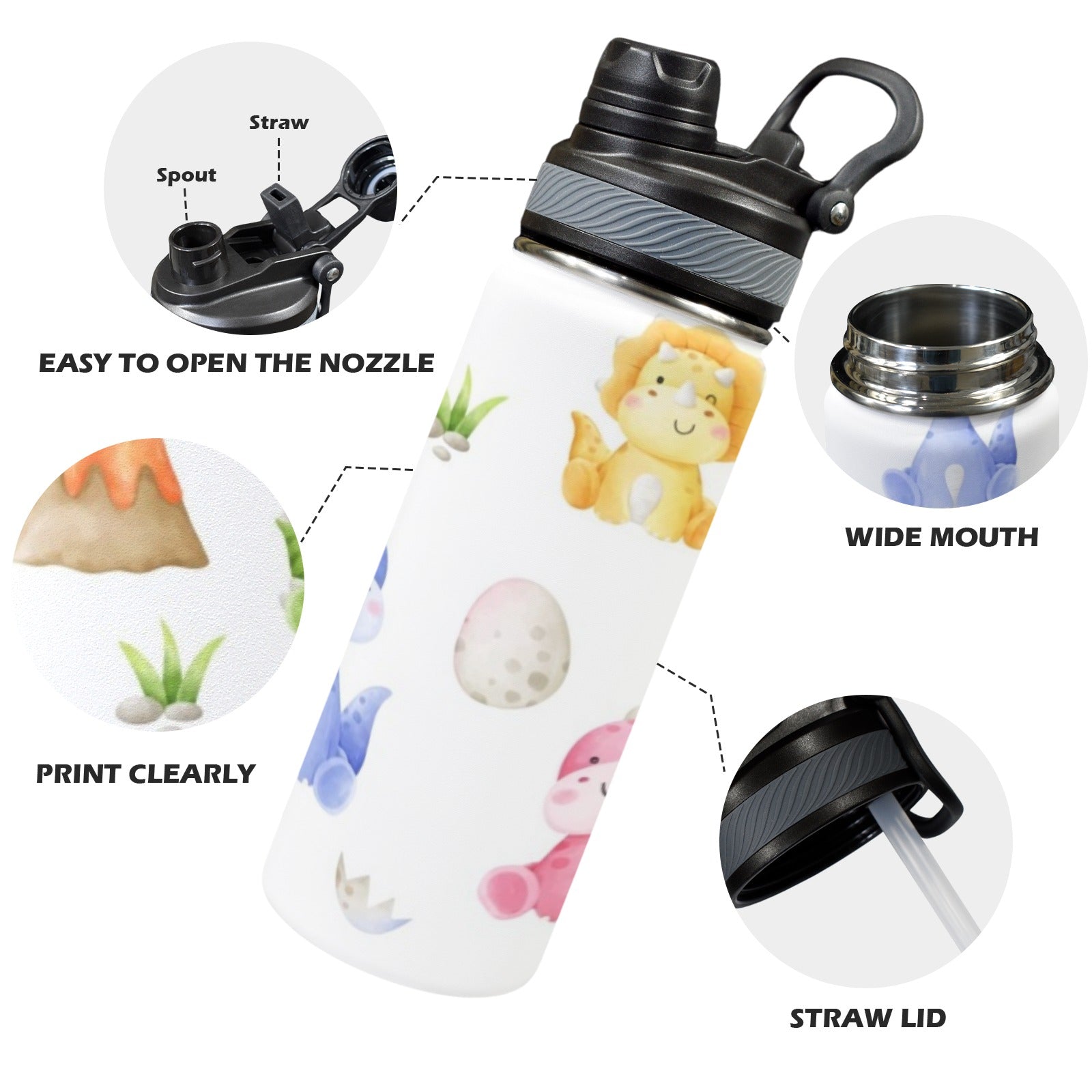 Hatching Dinosaurs - Insulated Water Bottle with Dual-Use Lid (18oz)