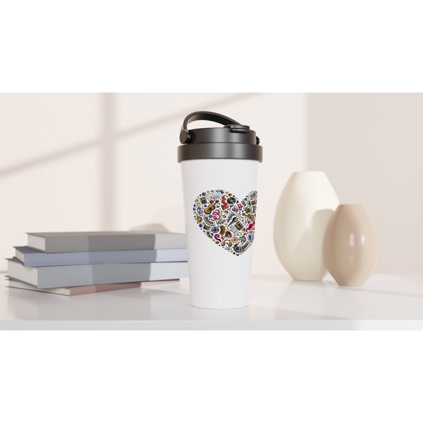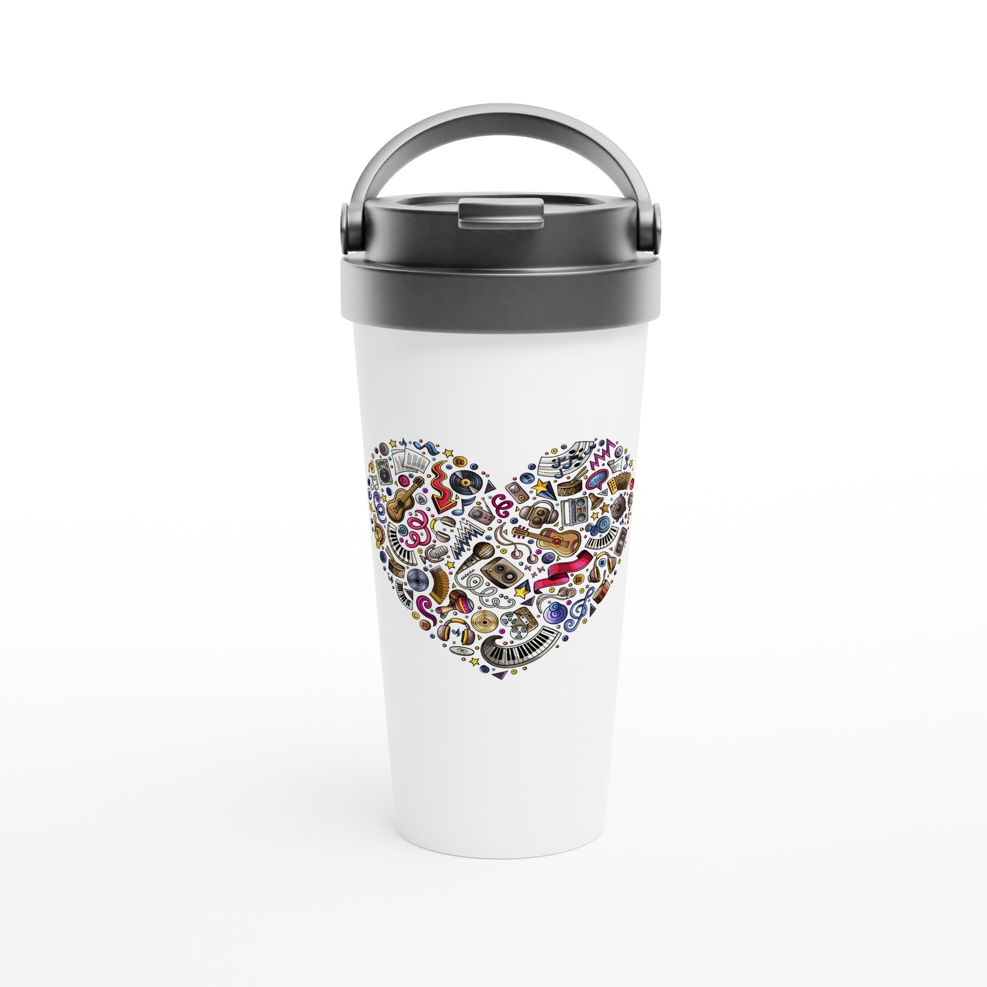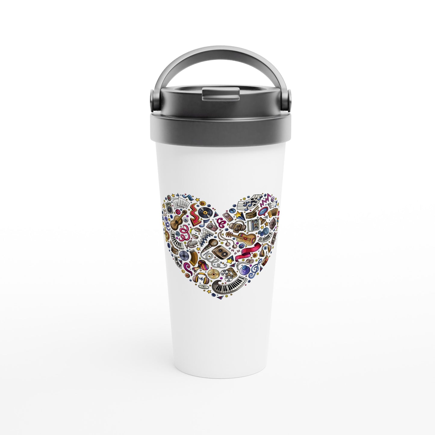 Heart Music - White 15oz Stainless Steel Travel Mug