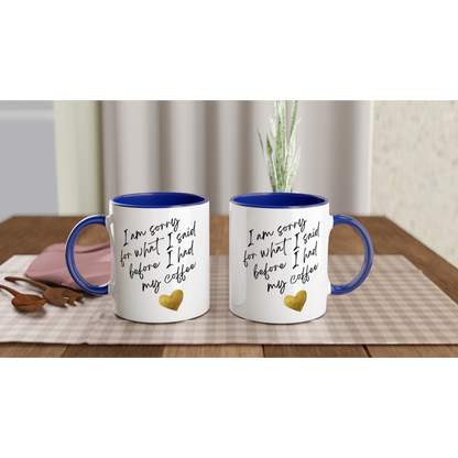 I Am Sorry For What I Said Before I Had My Coffee - White 11oz Ceramic Mug with Colour Inside