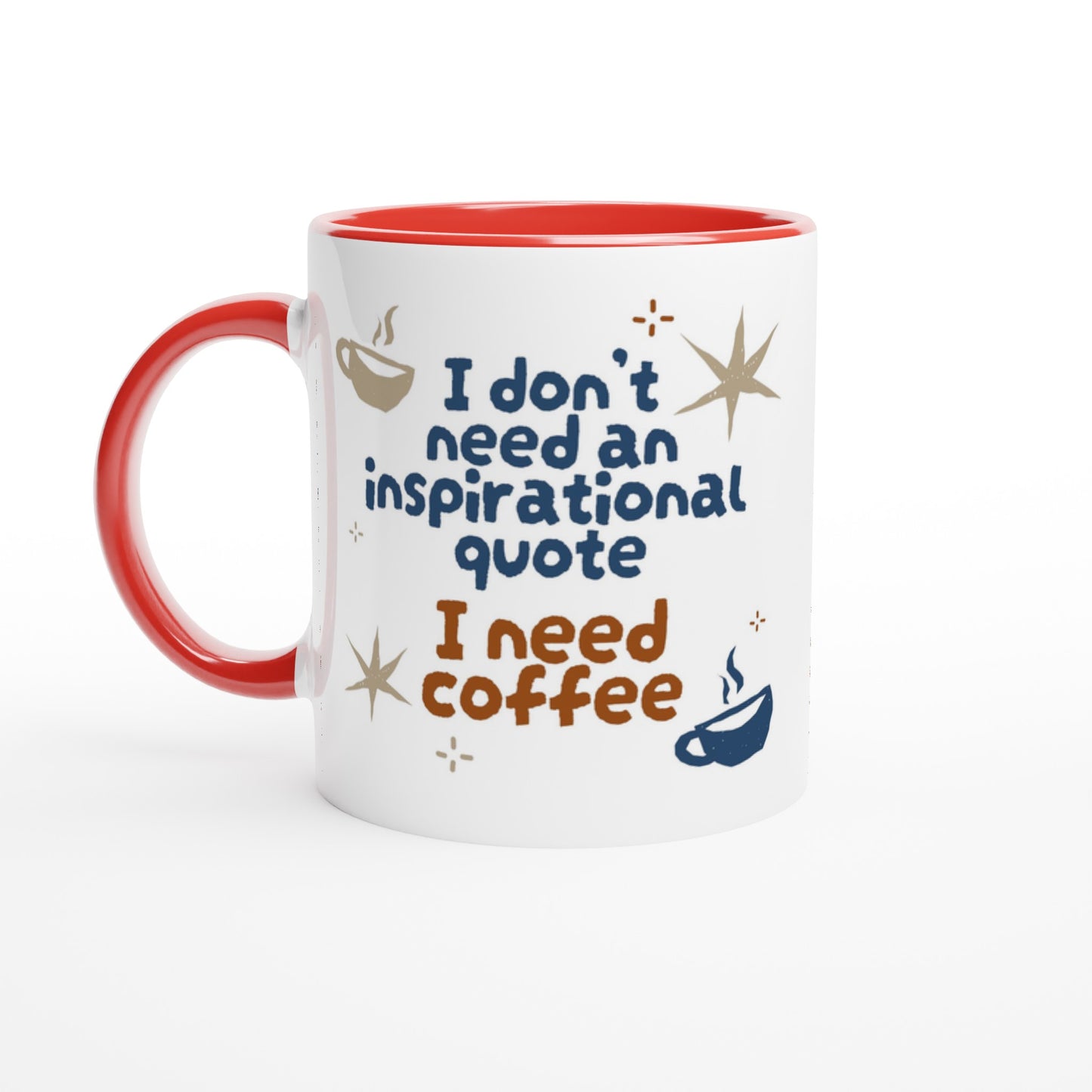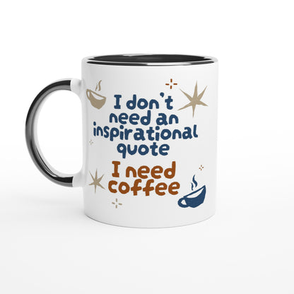 I Don't Need An Inspirational Quote, I Need Coffee - White 11oz Ceramic Mug with Colour Inside