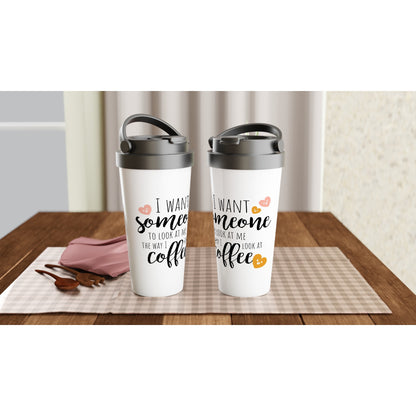 I Want Someone To Look At Me The Way I Look At Coffee - White 15oz Stainless Steel Travel Mug