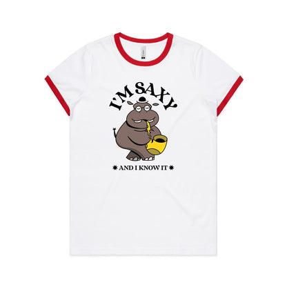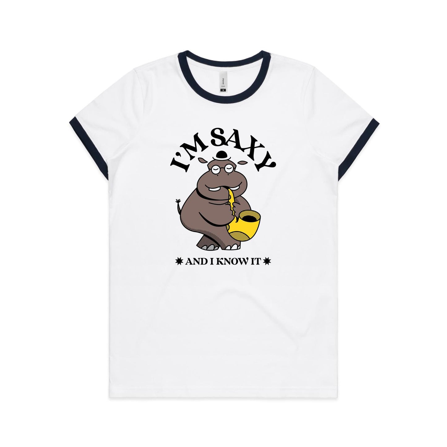 I'm Saxy And I Know It, Hippo Trumpet Player - Women's Ringer Tee