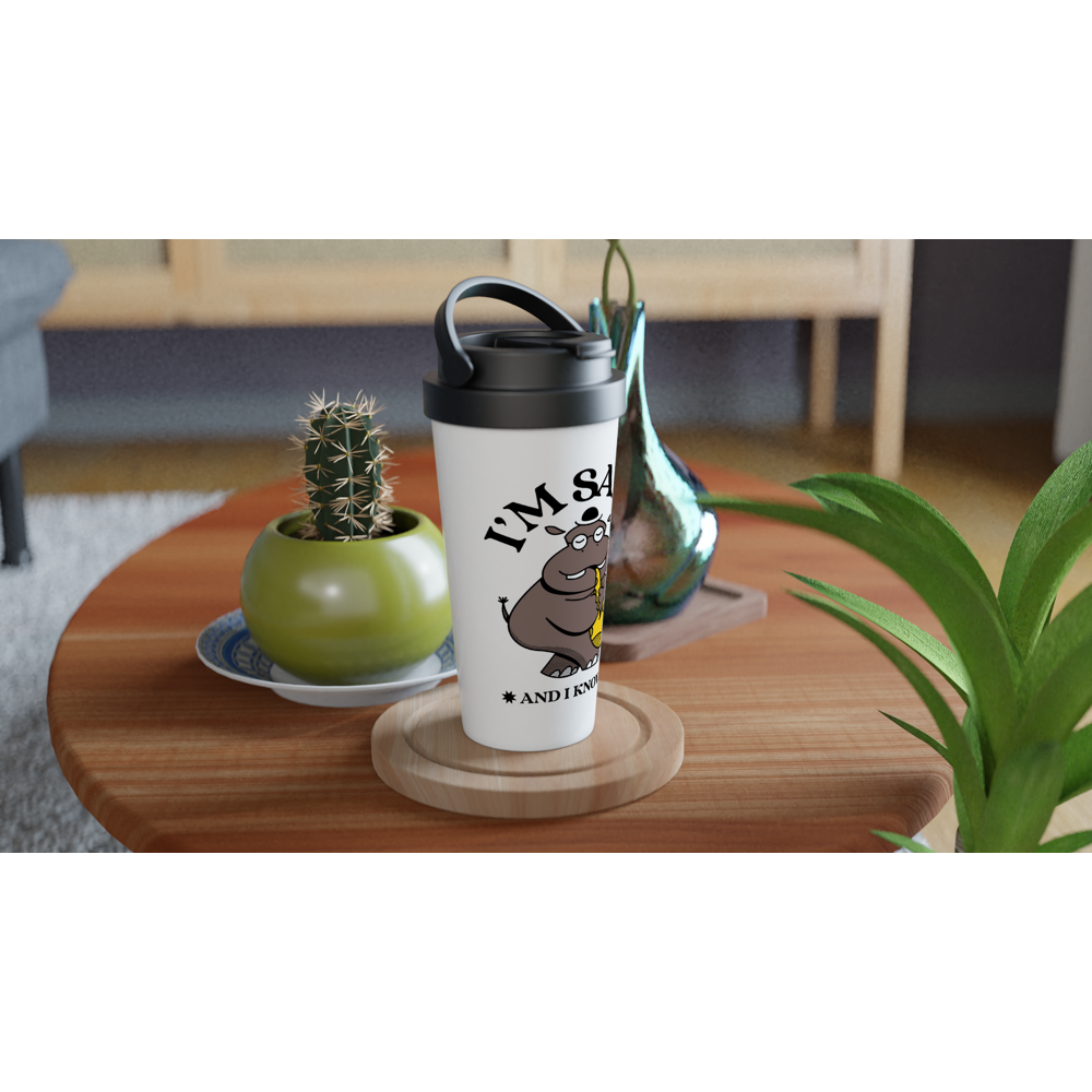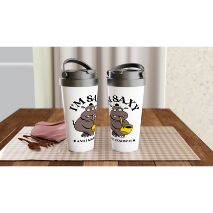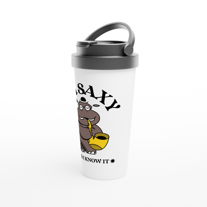 I'm Saxy And I Know It, Saxophone Hippo - White 15oz Stainless Steel Travel Mug