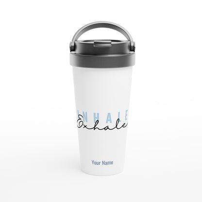 Personalised - Inhale, Exhale - White 15oz Stainless Steel Travel Mug