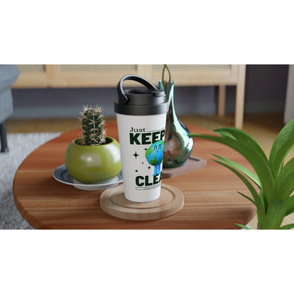 Just Keep It Clean, Planet Earth - White 15oz Stainless Steel Travel Mug