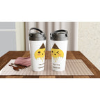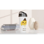 This 15oz/440ml stainless steel travel mug will keep your drinks at their desired temperature for hours in style!