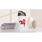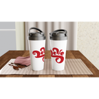 This 15oz/440ml stainless steel travel mug will keep your drinks at their desired temperature for hours in style!