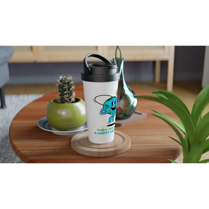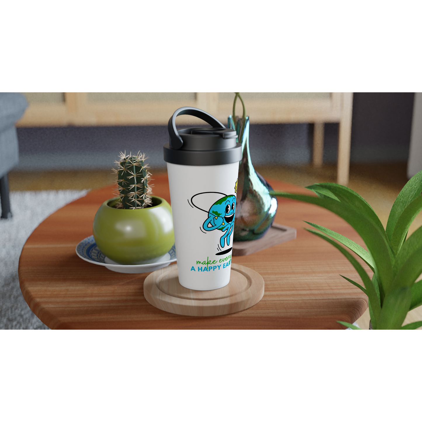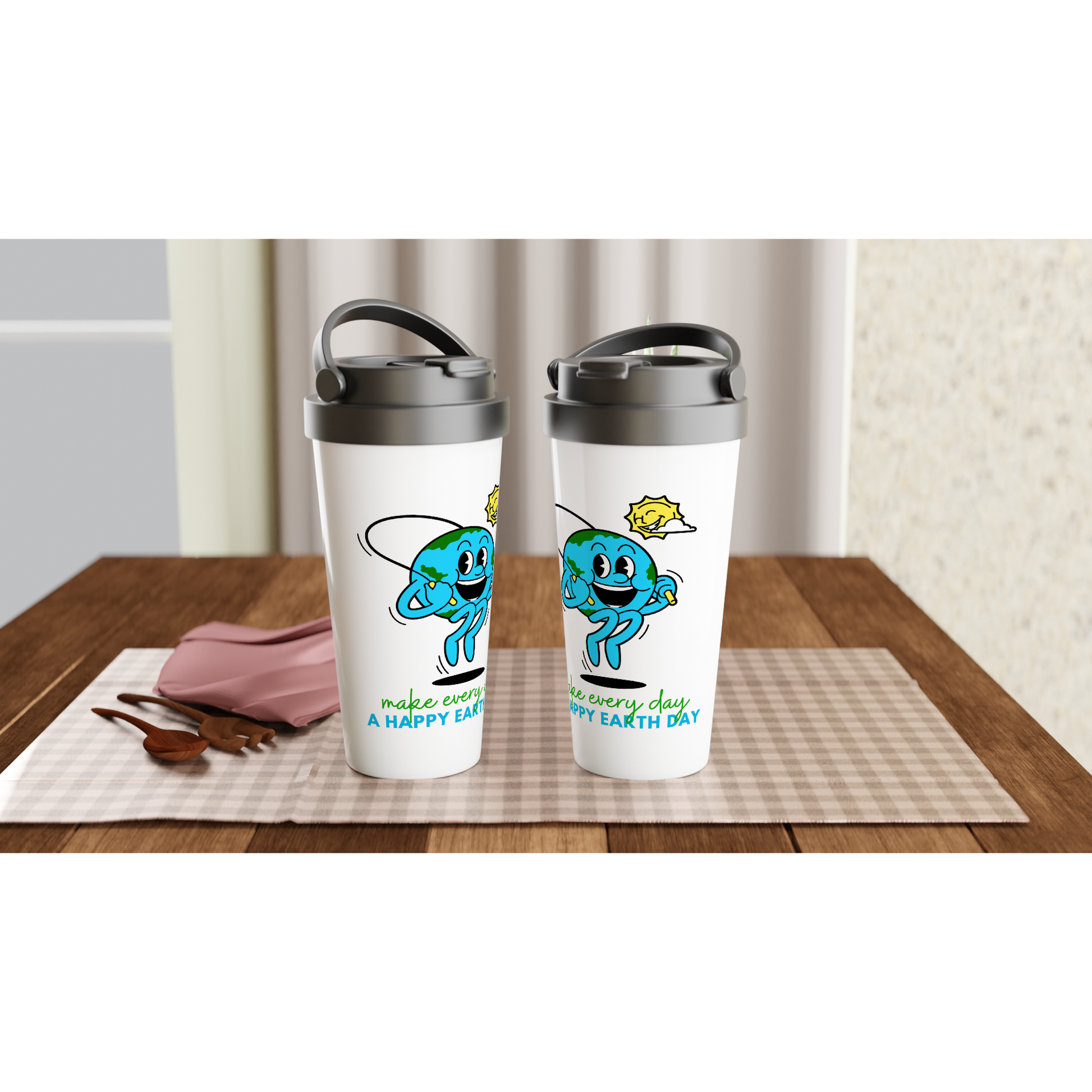 Make Every Day A Happy Earth Day - White 15oz Stainless Steel Travel Mug