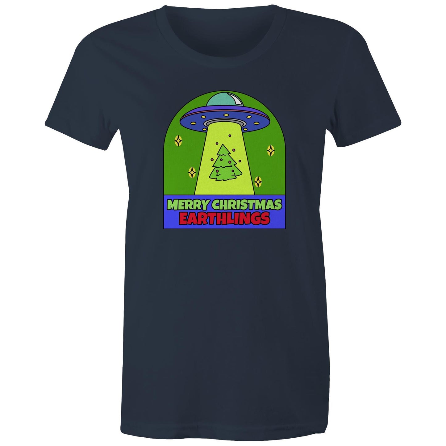 Merry Christmas Earthlings, UFO - Womens T-shirt