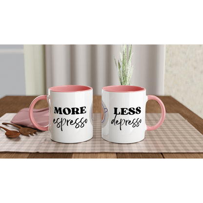 More Espresso, Less Depresso - White 11oz Ceramic Mug with Colour Inside