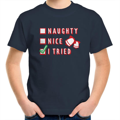 Naughty, Nice, I Tried, Santa's Christmas List - Kids Youth T-Shirt