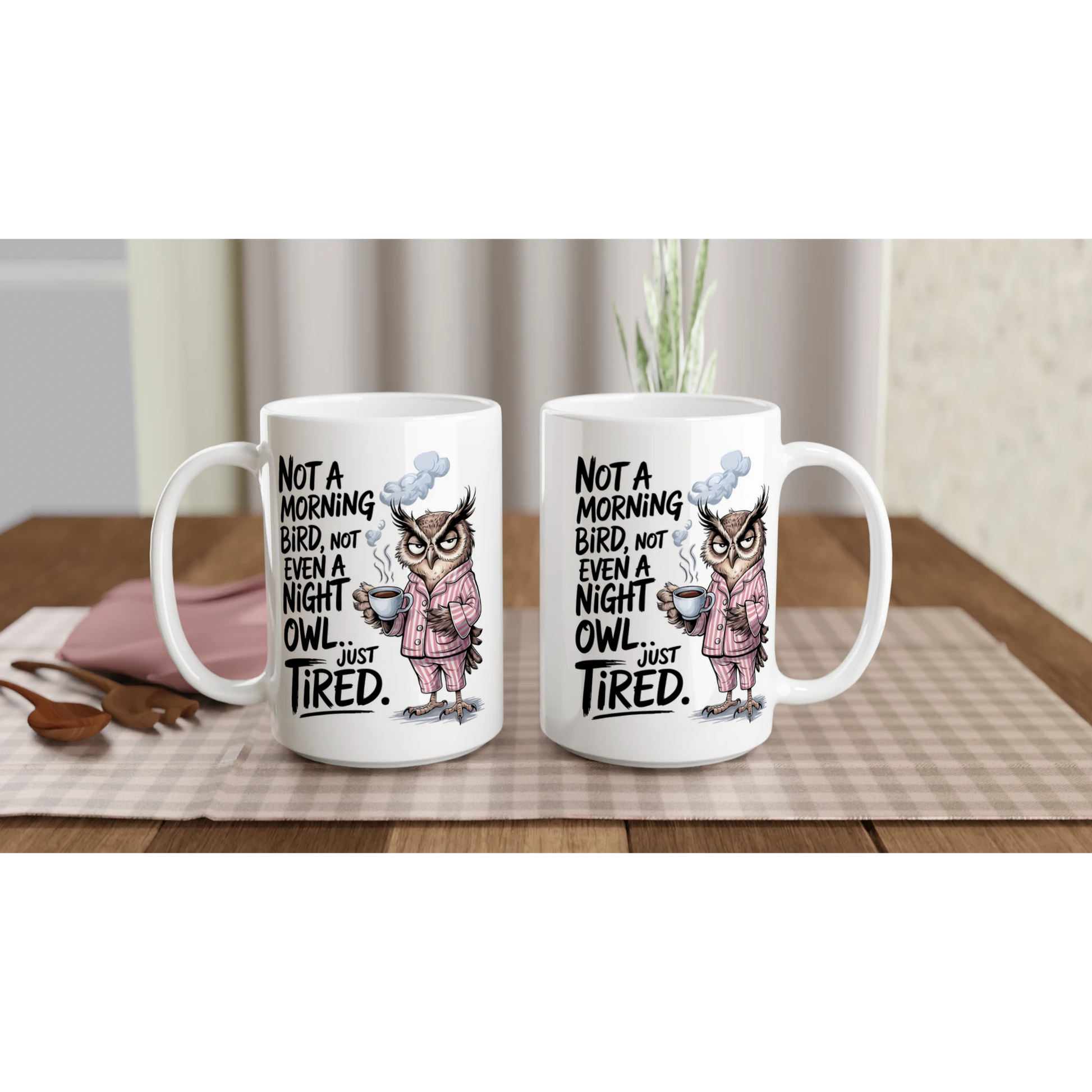 Not A Morning Bird, Not A Night Owl, Just Tired - White 15oz Ceramic Mug