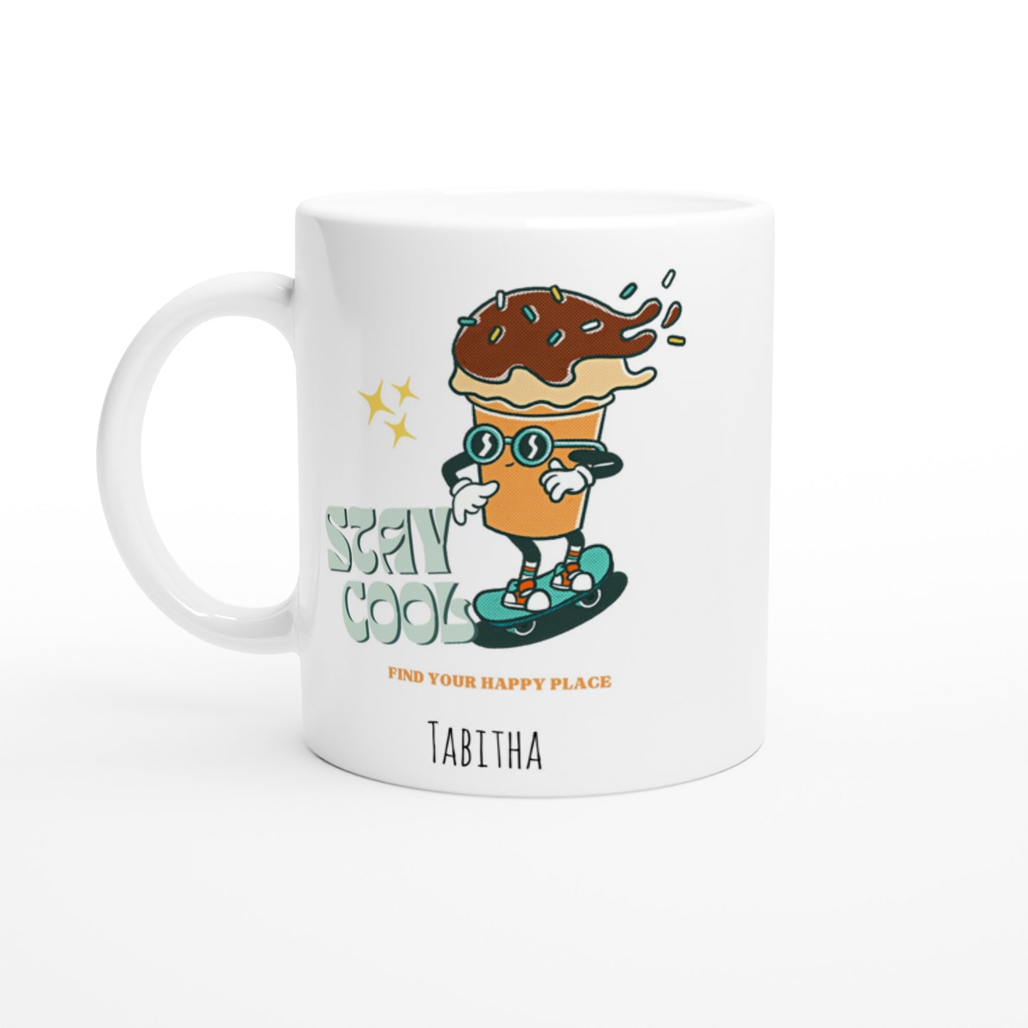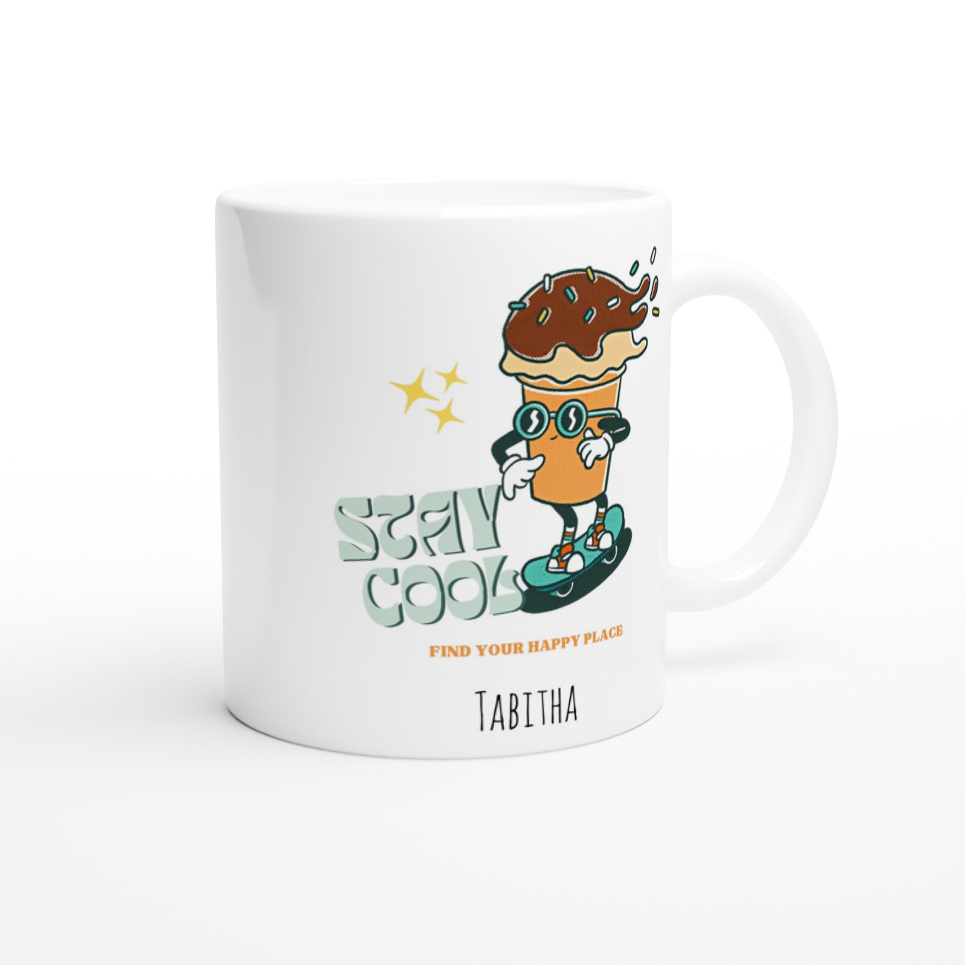 Personalise - Stay Cool, Ice Cream - White 11oz Ceramic Mug Ceramic White Personalised Mug customise Globally Fulfilled personalise Retro
