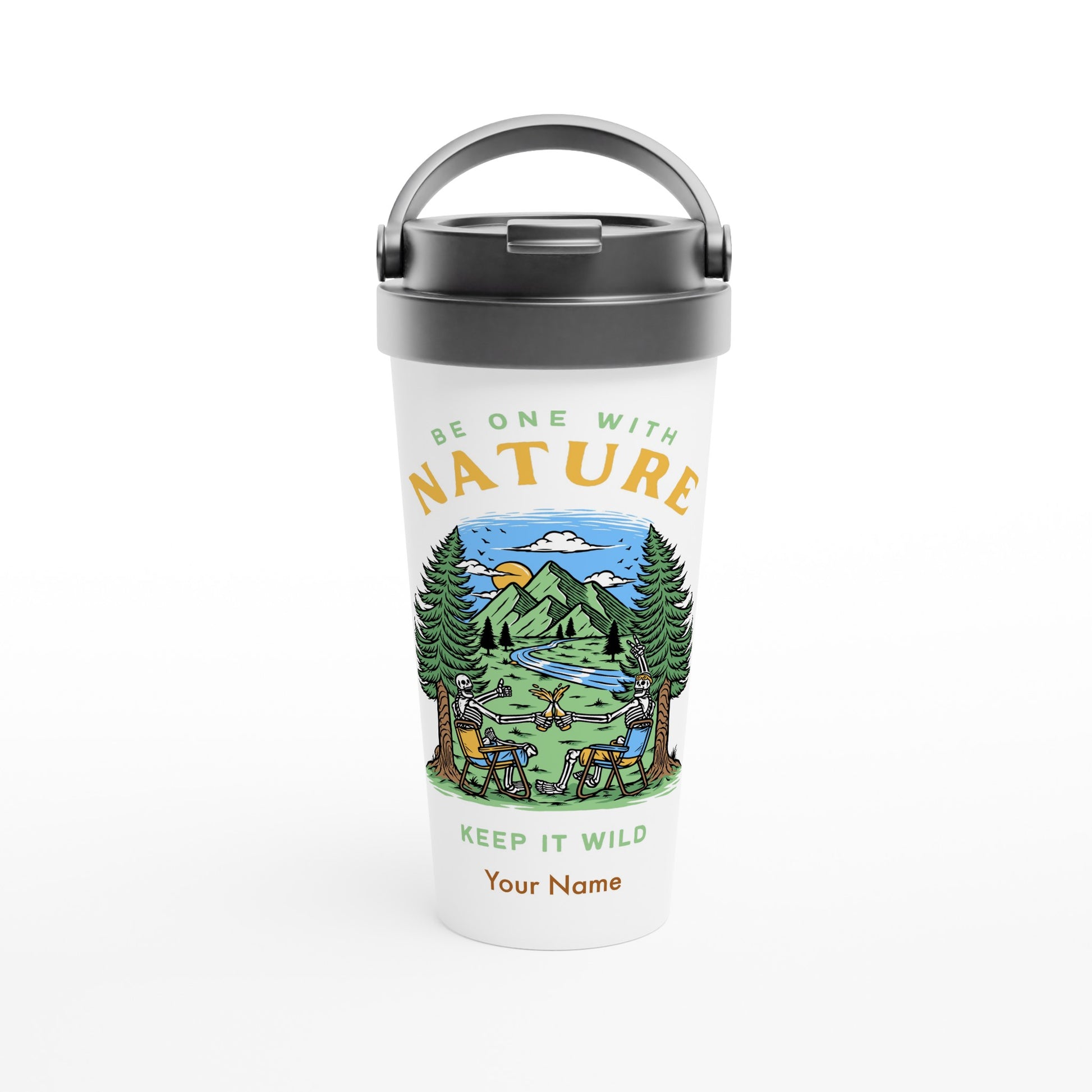 Personalised - Be One With Nature, Skeleton - White 15oz Stainless Steel Travel Mug