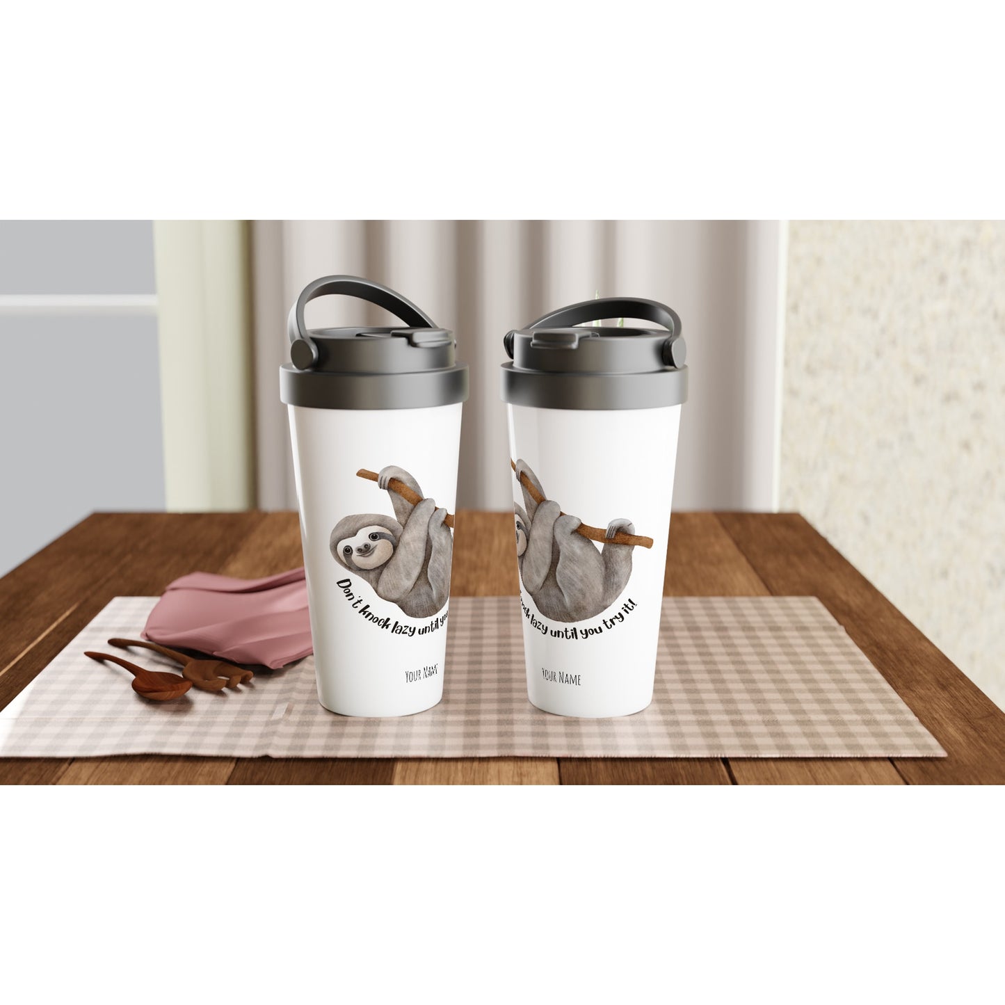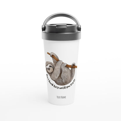 Personalised - Don't Knock Lazy Until You Try It, Sloth - White 15oz Stainless Steel Travel Mug
