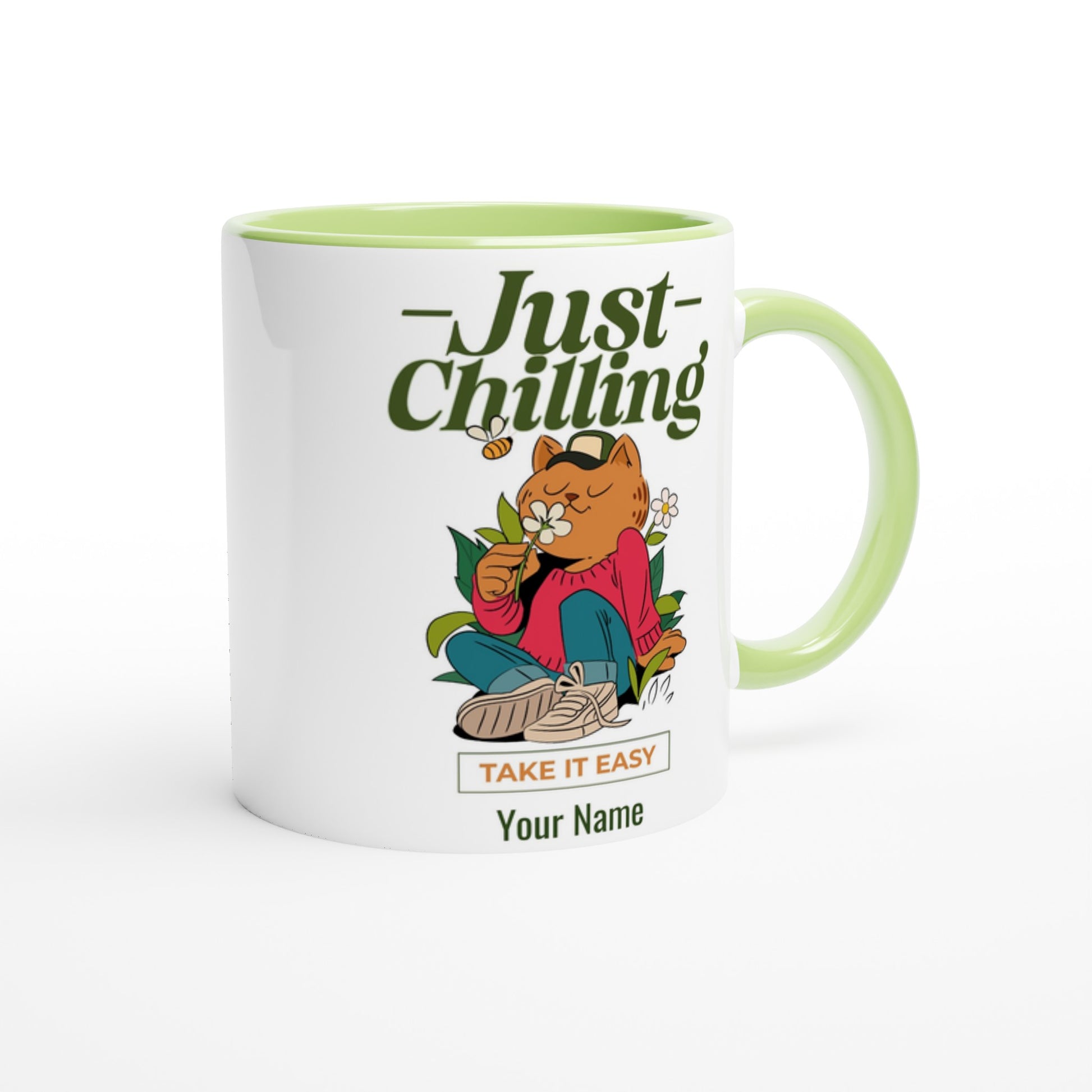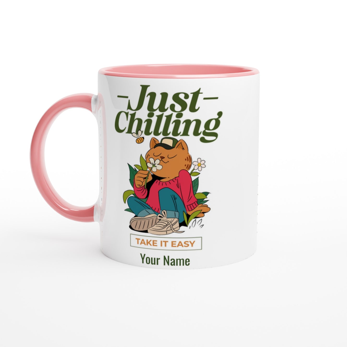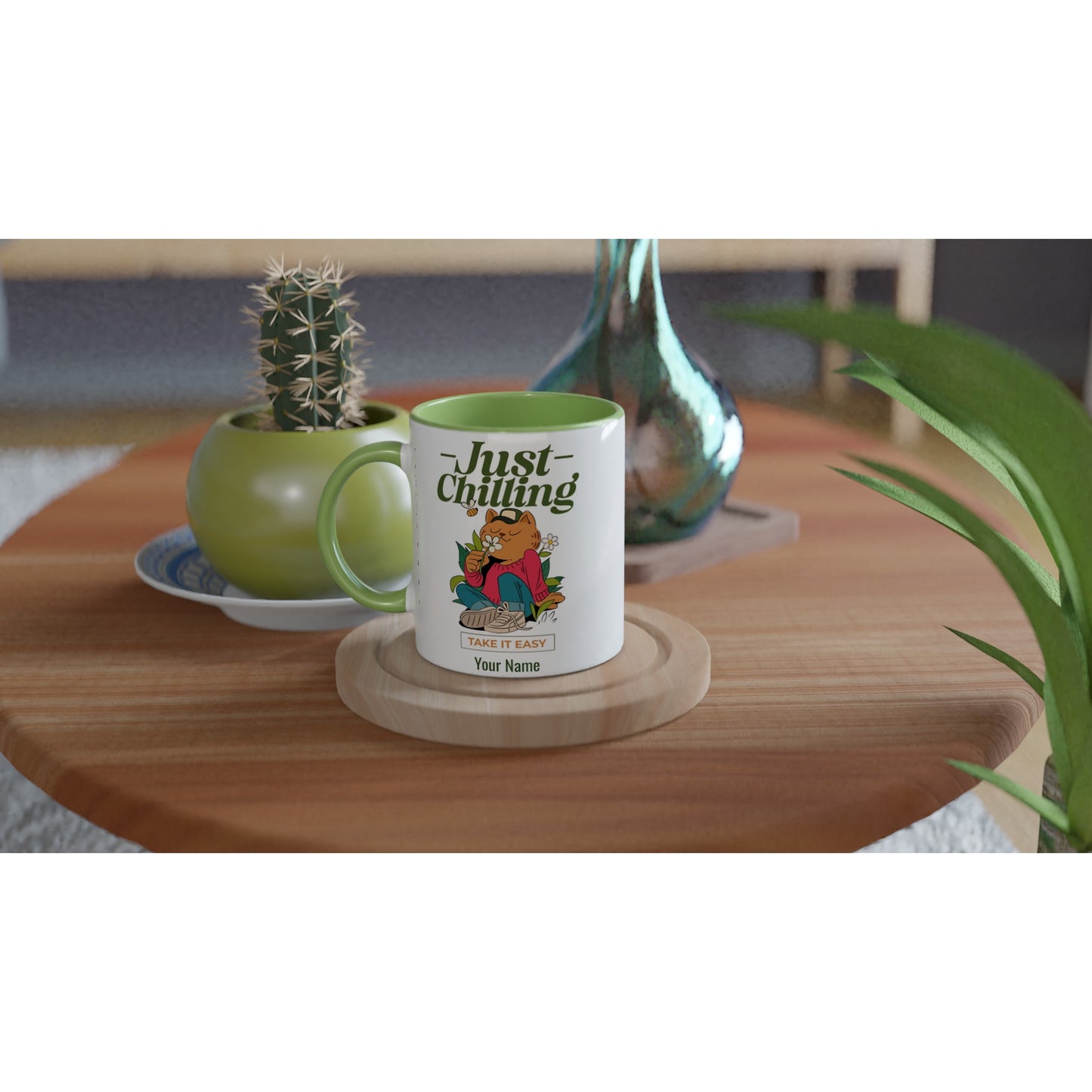 Personalised - Just Chilling - White 11oz Ceramic Mug with Color Inside