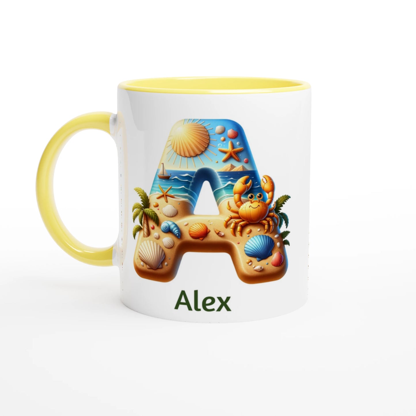 Personalised - Summer Beach Initials - White 11oz Ceramic Mug with Colour Inside