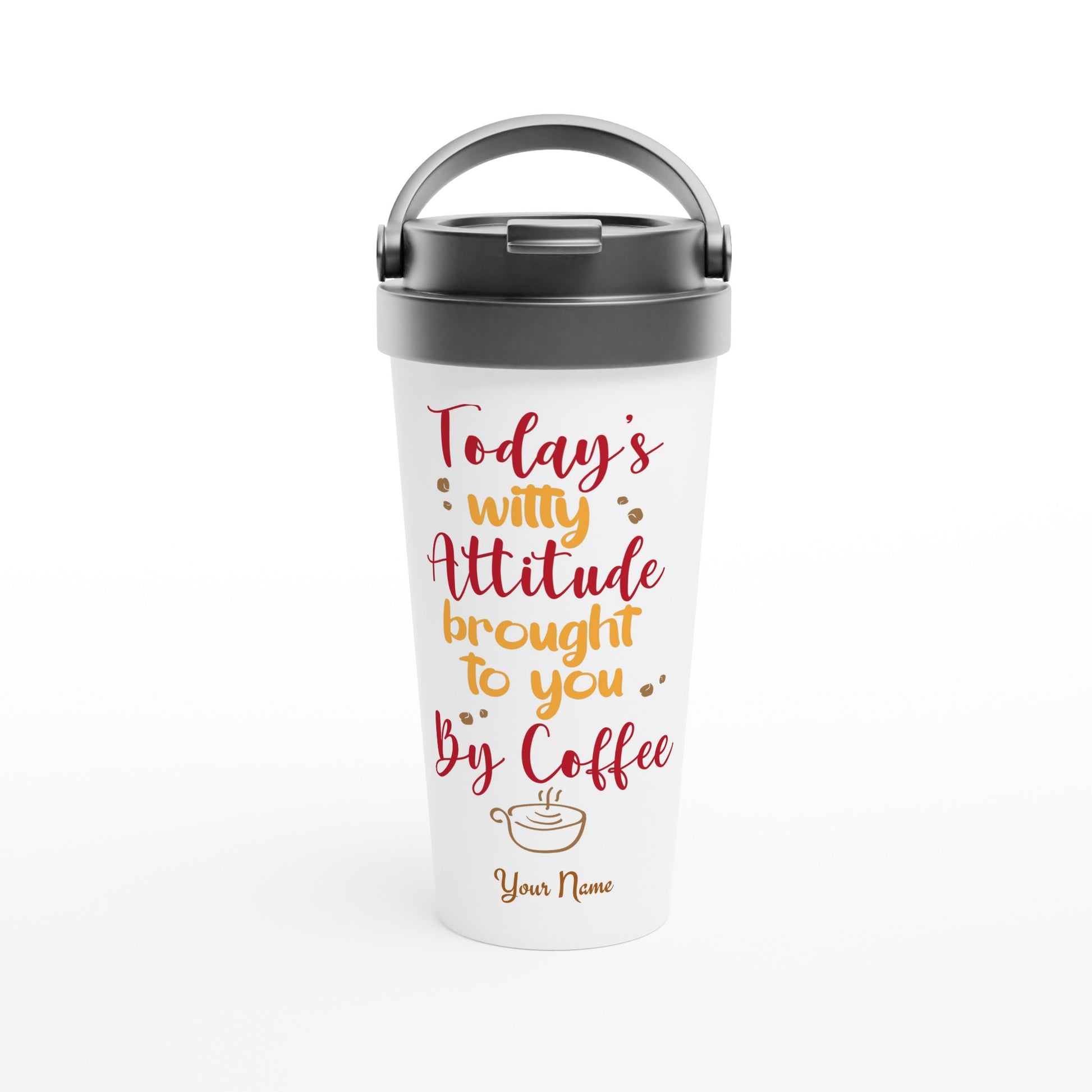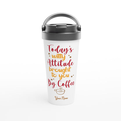 Personalised - Today's Witty Attitude Brought To You By Coffee - White 15oz Stainless Steel Travel Mug