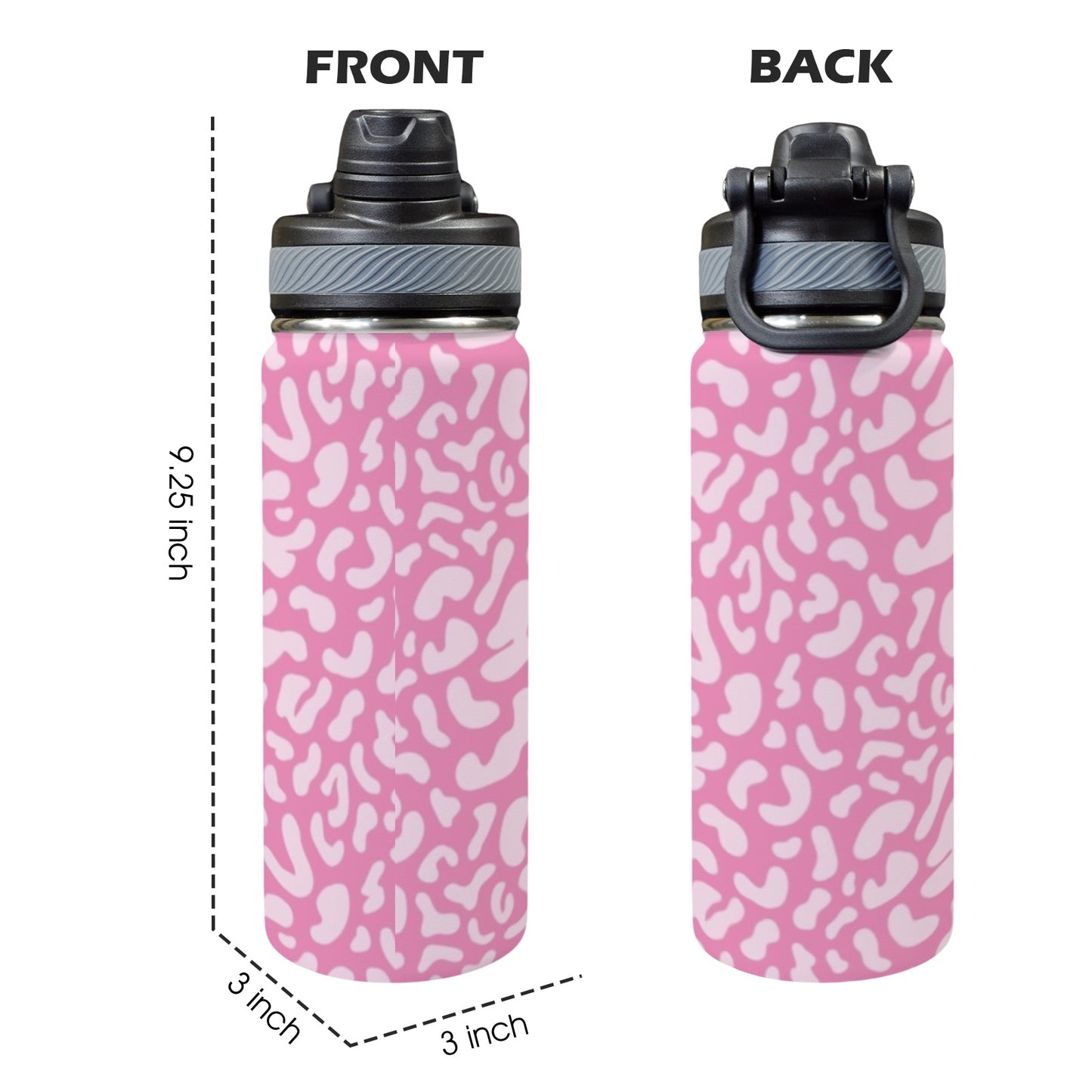 Pink Leopard - Insulated Water Bottle with Dual-Use Lid (18oz)