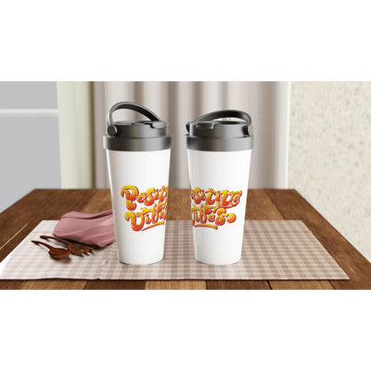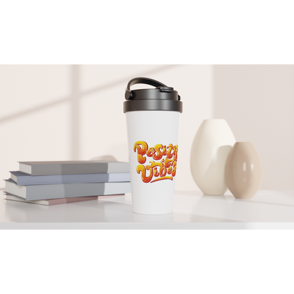 Positive Vibes - White 15oz Stainless Steel Travel Mug