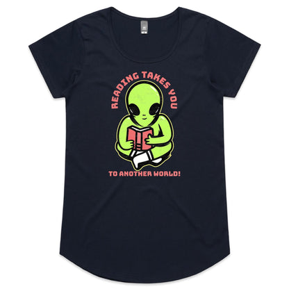 Reading Takes You To Another World, Alien - Womens Scoop Neck T-Shirt