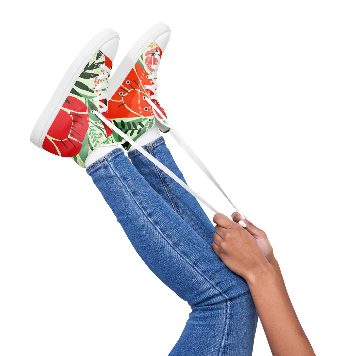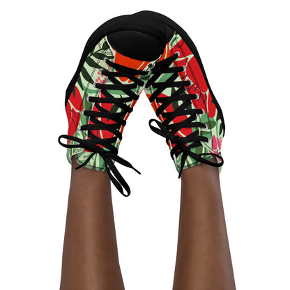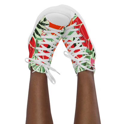 Red Floral - Women’s high top canvas shoes