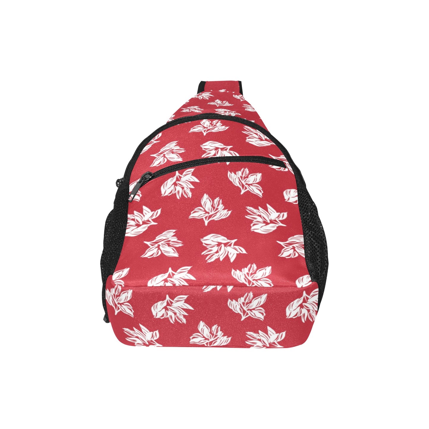 Red Retro Foliage, Hawaiian Flower - Chest Bag