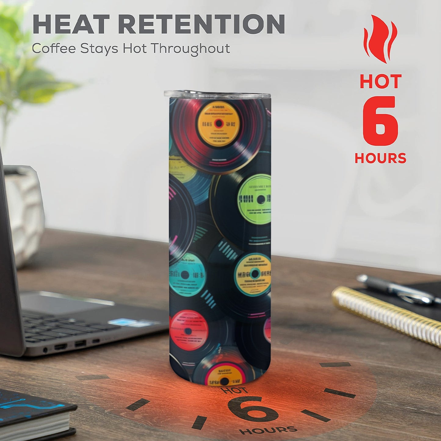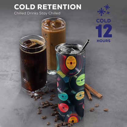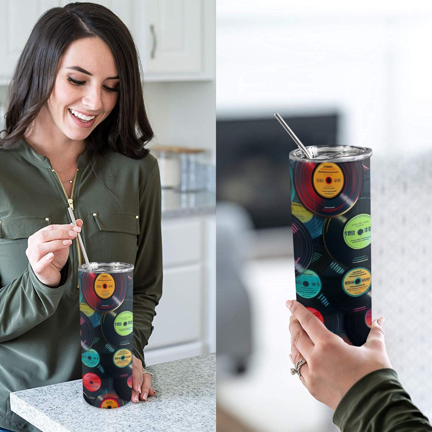 Retro Vinyl Records 2 - 20oz Tall Skinny Tumbler with Lid and Straw