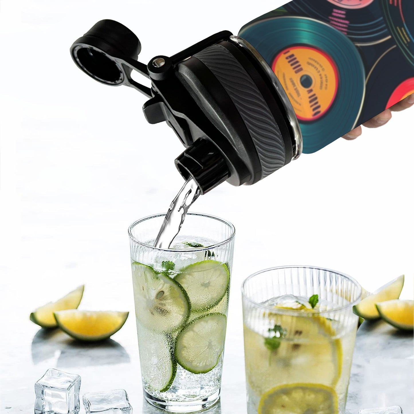 Retro Vinyl Records 2 - Insulated Water Bottle with Dual-Use Lid (18oz)