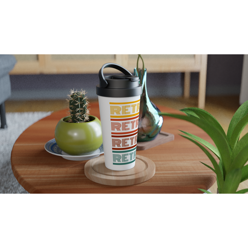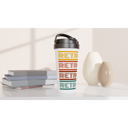 This 15oz/440ml stainless steel travel mug will keep your drinks at their desired temperature for hours in style!