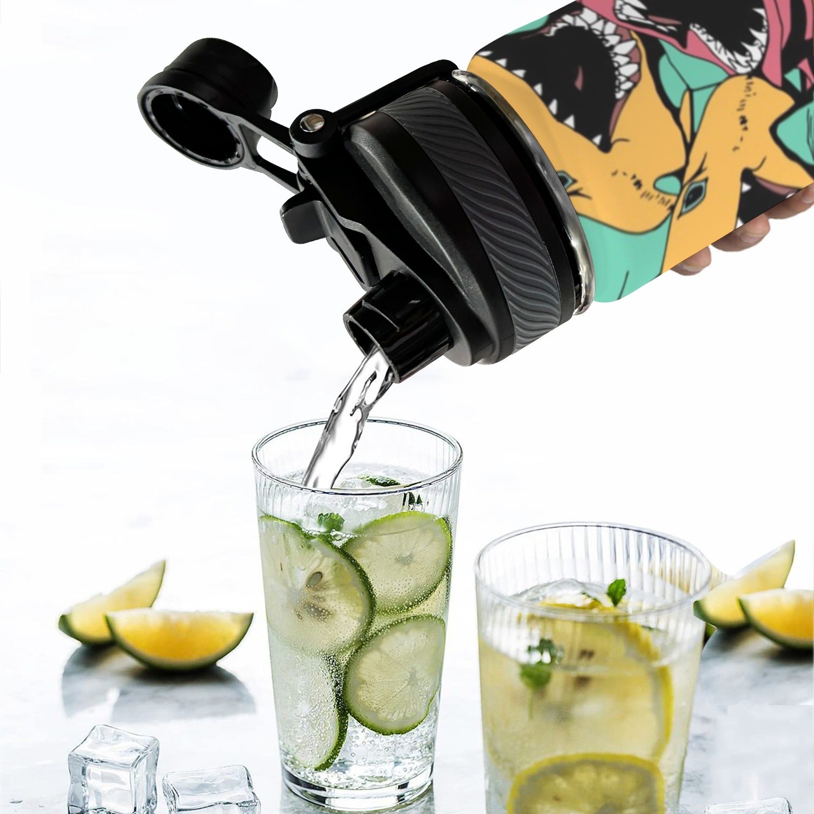 With dual-use lid and top handle, this water bottle can accompany you anywhere.