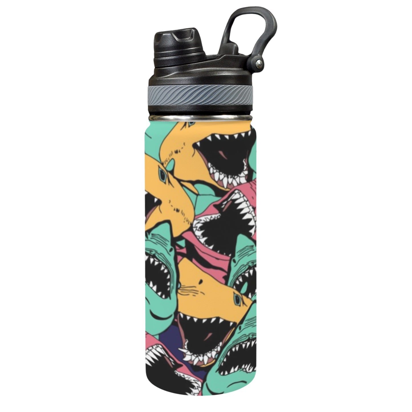 Scary Sharks - Insulated Water Bottle with Dual-Use Lid (18oz)