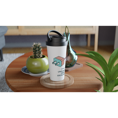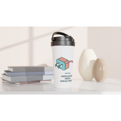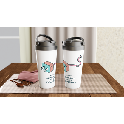 Status : Unplugged From Social Media - White 15oz Stainless Steel Travel Mug