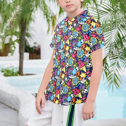 Smaller sizes are our Junior Kids Hawaiian Shirts.