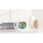 This beautiful ceramic mug is perfect for any event of the day. Your morning coffee, a hot chocolate, or any other hot beverage you enjoy. The mug is glossy white and the prints come out beautifully and vividly on it. The print retains its quality and luster when used in both microwaves and the dishwasher.
