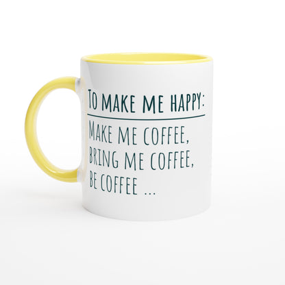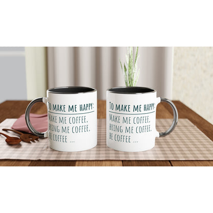 To Make Me Happy, Be Coffee - White 11oz Ceramic Mug with Colour Inside