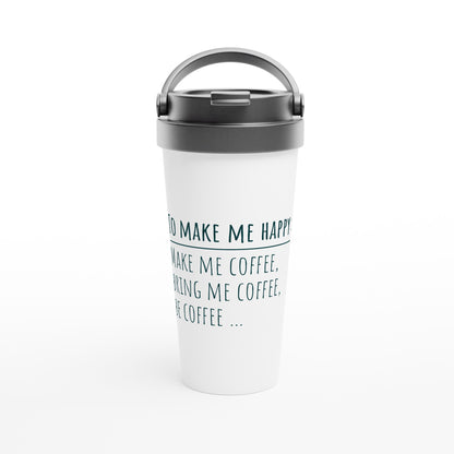 To Make Me Happy, Be Coffee - White 15oz Stainless Steel Travel Mug