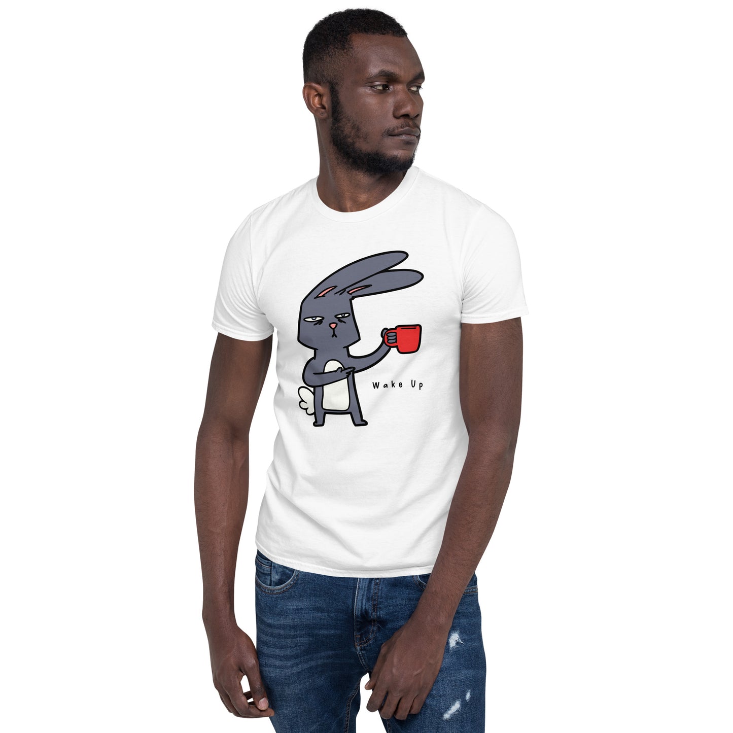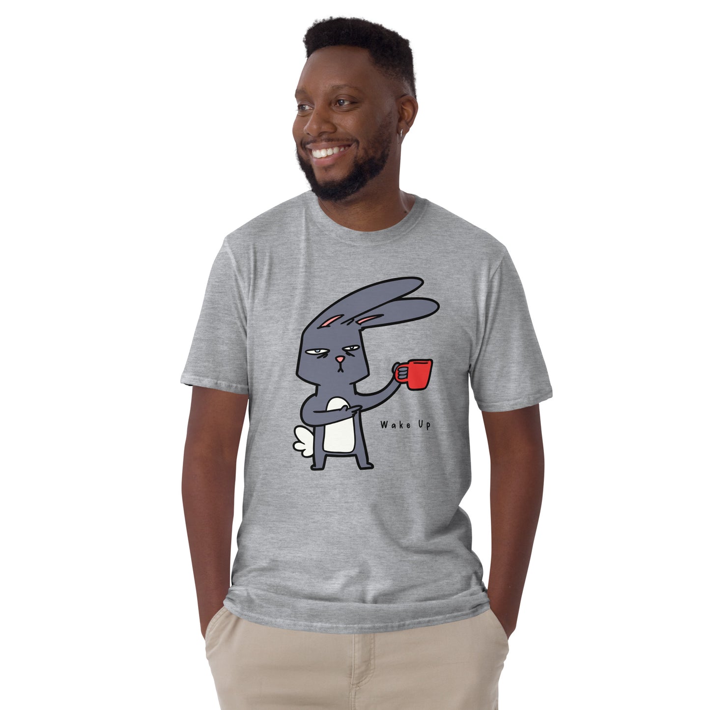 Wake Up, Coffee, Rabbit - Short-Sleeve Unisex T-Shirt