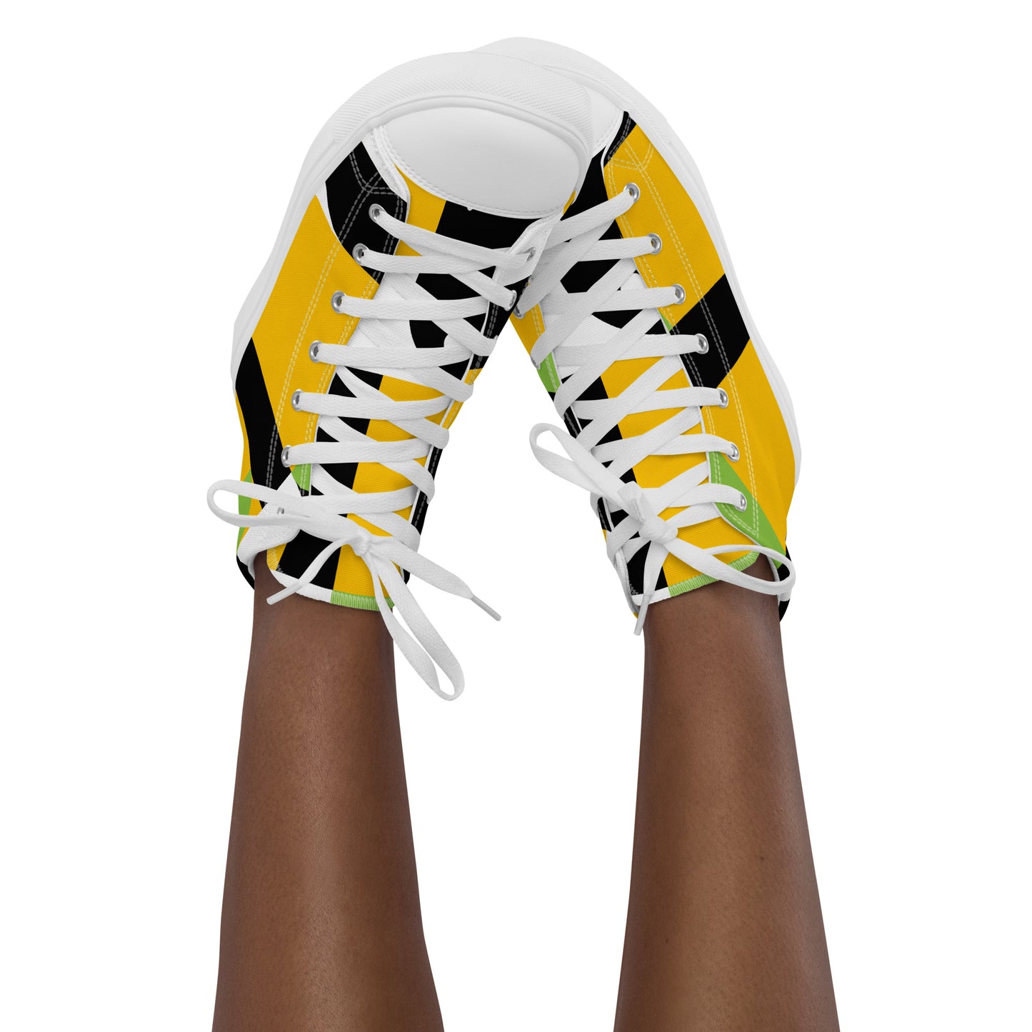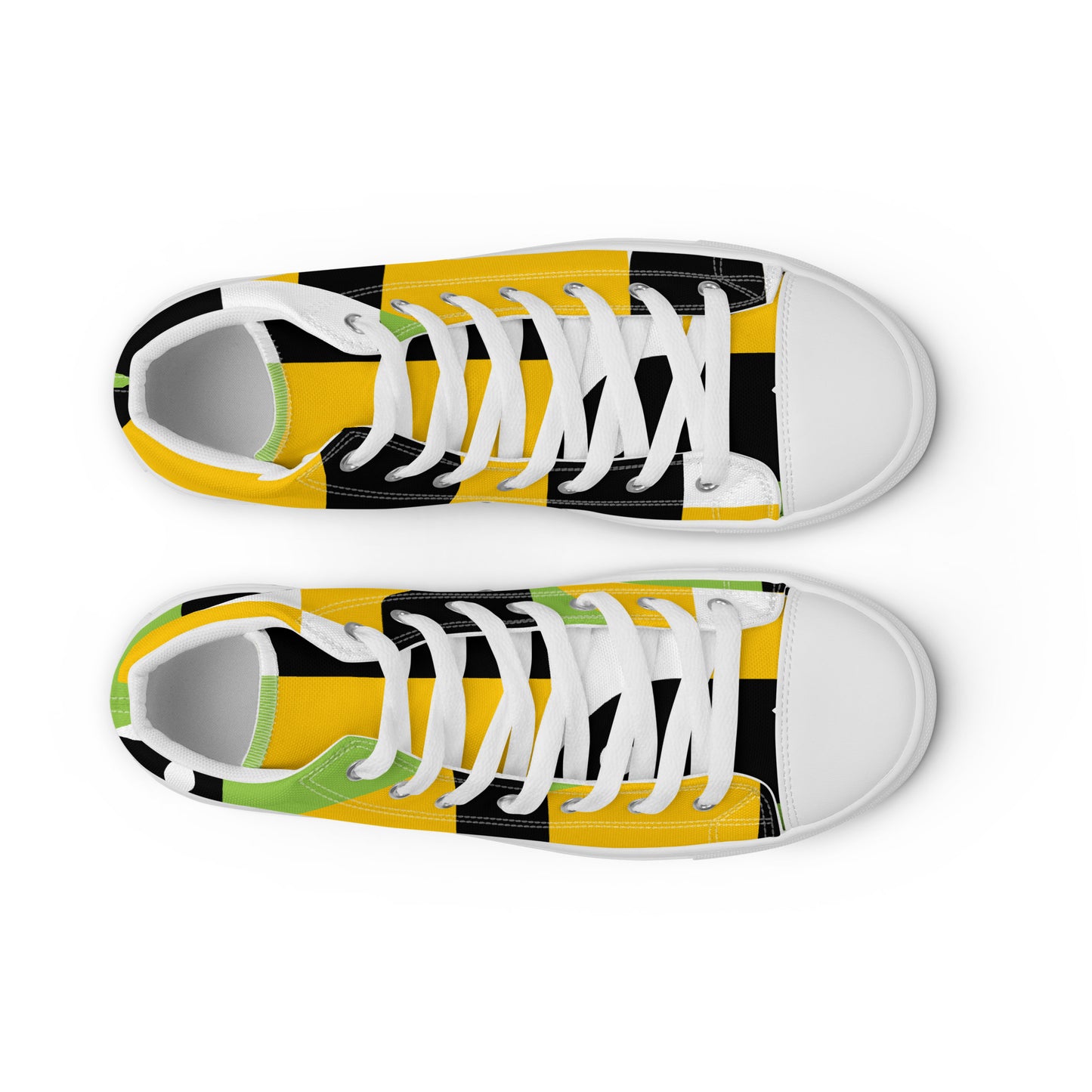 Yellow, Green And Black Geometric - Women’s high top canvas shoes